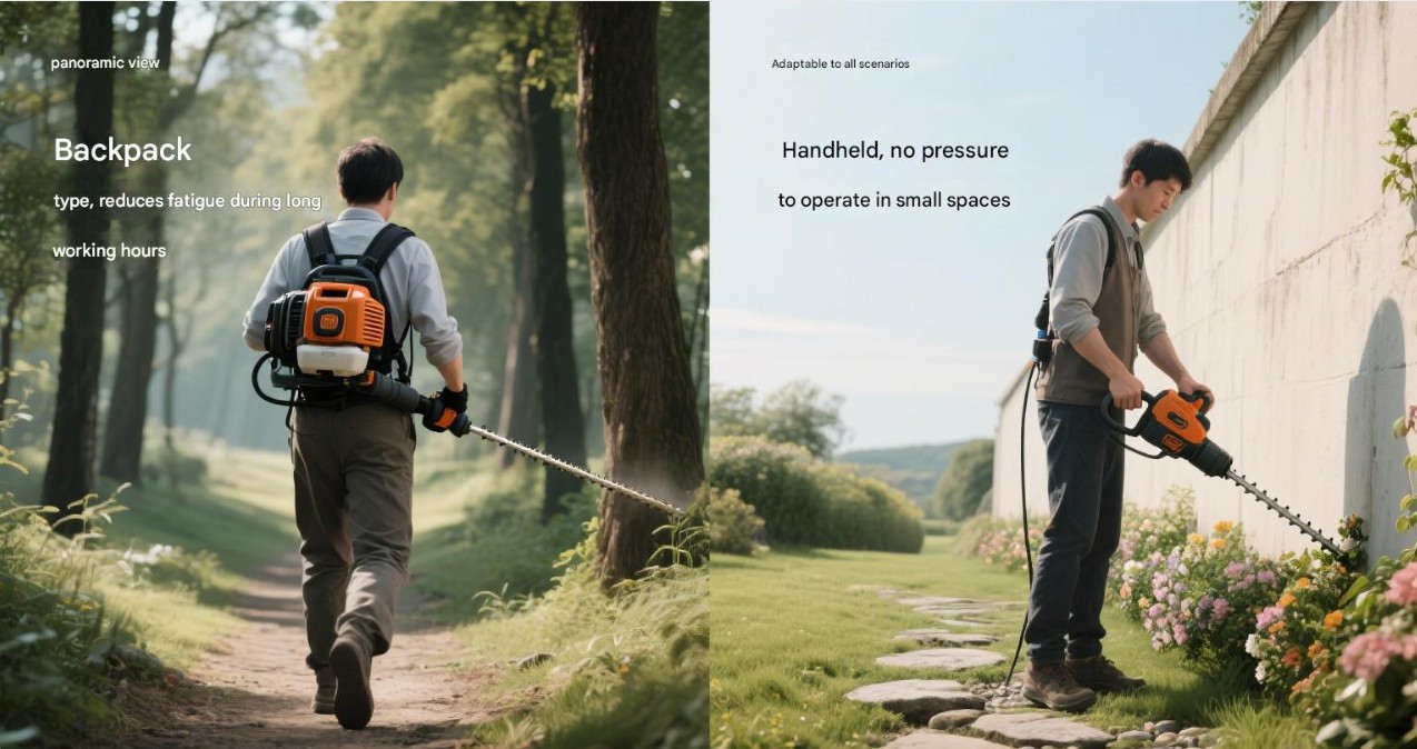 Klippning av stora ytor: För klippning av stora ytor och komplex terräng rekommenderas det att välja en ryggsäcksklippare, såsom BG151 Kraftfull Knapsack Busrycutter och BG350A-GX Knapsack 4 Stroke Brush Cutter. Dessa modeller är kraftfulla och har lång batteritid, lämpar sig för långvarig drift och kan effektivt utföra klipparbeten för stora ytor.