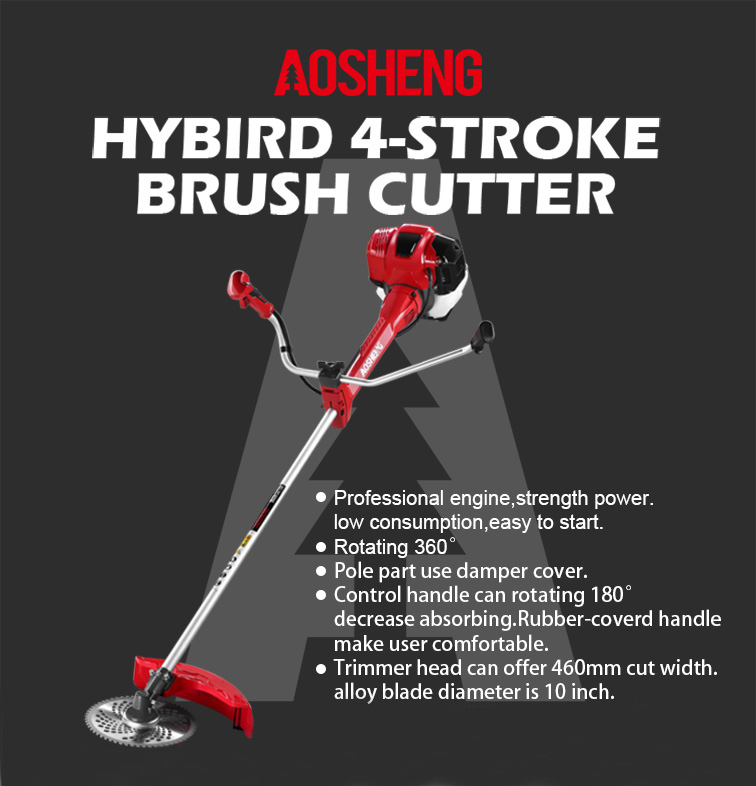 Professionell motor, styrka kraft.låg förbrukning, lättstartad. Roterande 360° Bekvämt kontrollhandtag och svampbälte. Trimmerhuvudet kan erbjuda en klippbredd på 460 mm. legeringsbladdiamete...