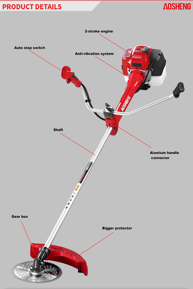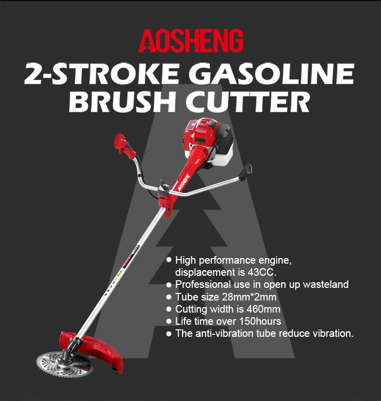 Högpresterande motor, slagvolymen är 33CC. Professionell användning öppnar ödemark Rörstorlek 26mm*1,5mm, styrka flexibelt skaft. Klippbredden är 420 mm Livstid över 150 timmar