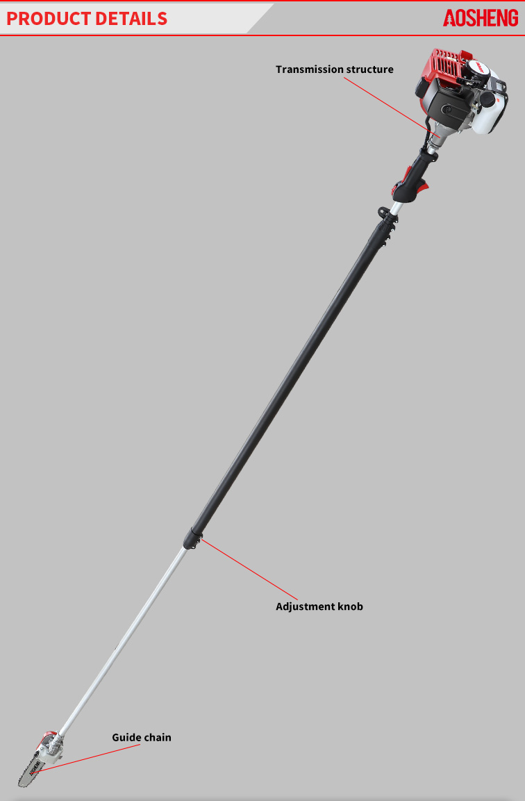 Professionell motor, styrka kraft. låg förbrukning, lätt att starta. Roterande 360° Pole-delen använder ett spjällskydd. Kontrollhandtaget kan vridas 180° för att minska absorptionen. Gumm...